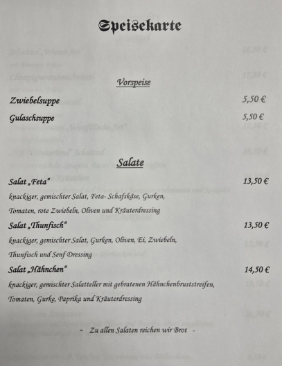 Speisekarte